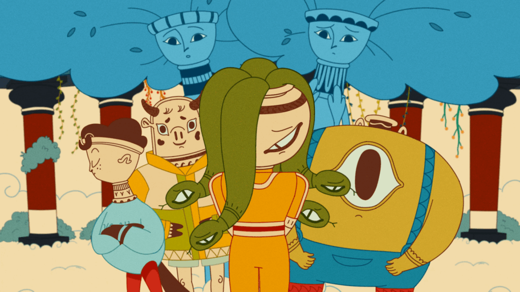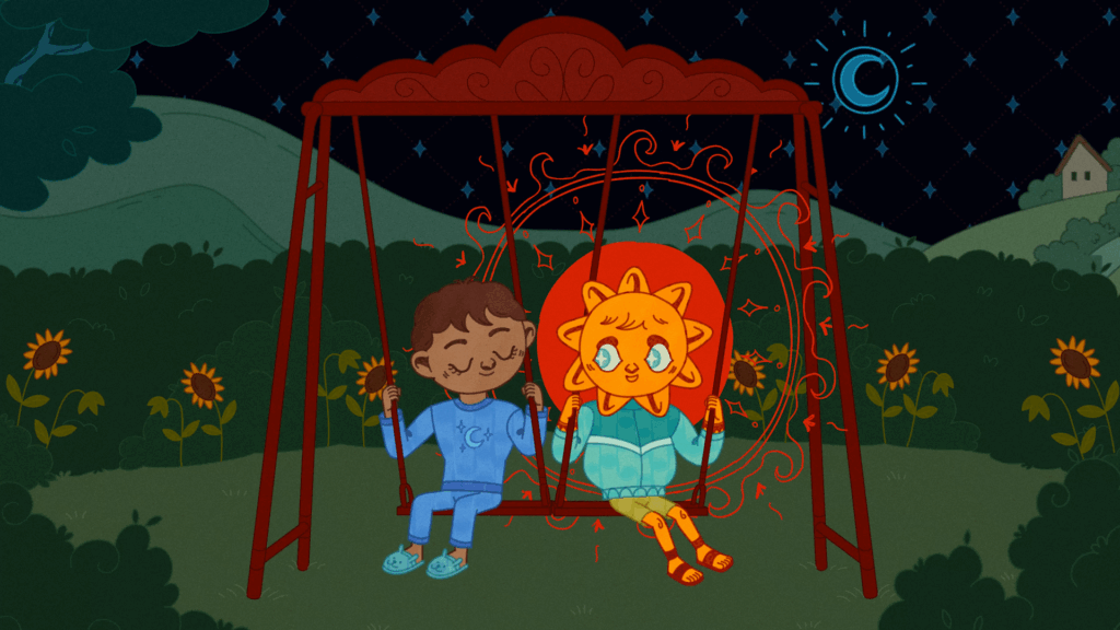 "In the clouds high above lies a mythical playground where the children of Greek gods and monsters come to play. Amongst them is little Yios with a shining sun on his head. Yios is determined to find friends, but cannot control his explosive energy and shine. The annoyed children devise a prank, leading to Yios’ fall to Earth. But in that strange place he meets someone unexpected – a curious blind boy. Thanks to him Yios discovers how to calm down and finally unlocks the true beauty of his shine."