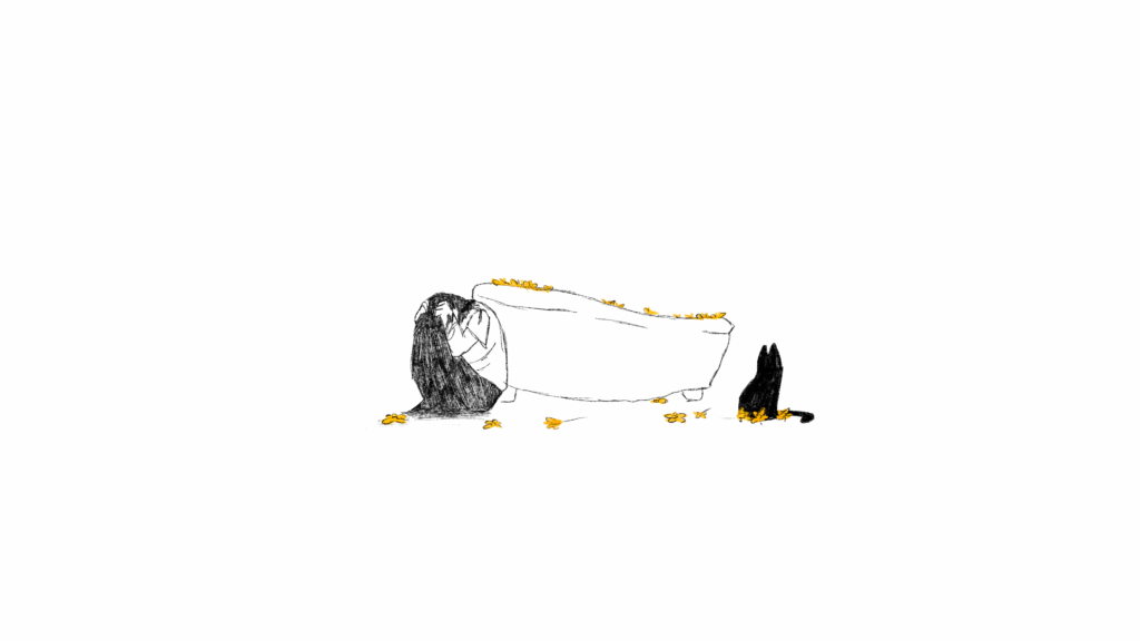 A young adult discovers their cat, dead in the bathtub. They decide to take care of him besides their mom's warnings that they don't understand yet. Through their cat's death, the protagonist becomes aware of the passing time.